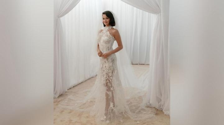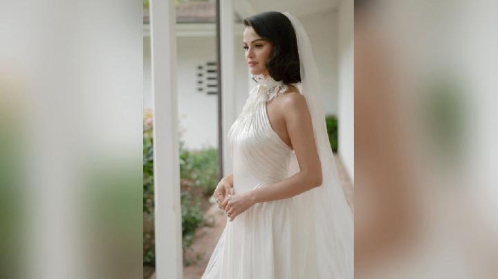 Selain itu, Selena juga tampil dengan gaun penganting strapless neckline dengan skirt bervolume yang terbuat dari renda putih tipis dengan detail bunga yang halus. Penampilannya yang elegan nan dramatis itu pun membuat banyak orang terpukau dengan pesonanya di hari pernikahan.
